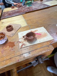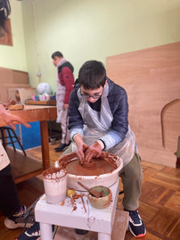 O grande destaque foi, sem dúvida, a roda de oleiro. Entre risos e muita concentração, cada aluno pôde sentar-se ao torno e sentir o barro ganhar forma entre as mãos. A atividade demonstrou que a olaria é tanto uma arte como um exercício de paciência e precisão.